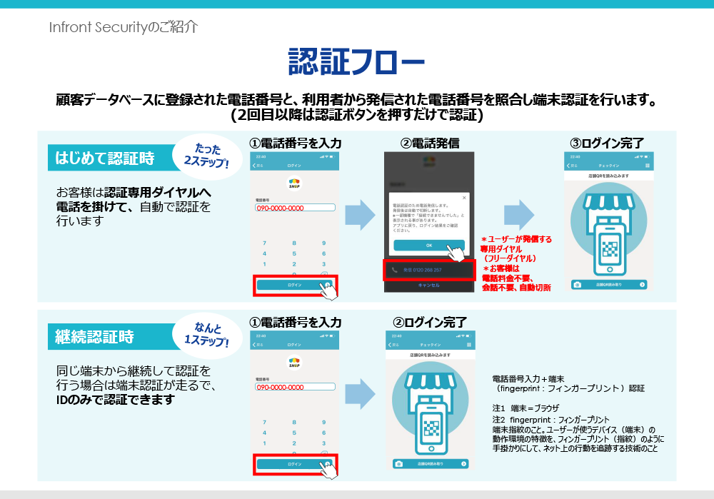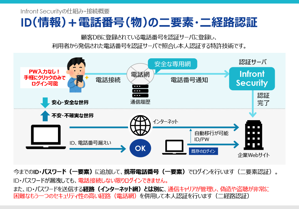 ・電話番号+端末情報による2要素・2経路認証(特許取得技術)