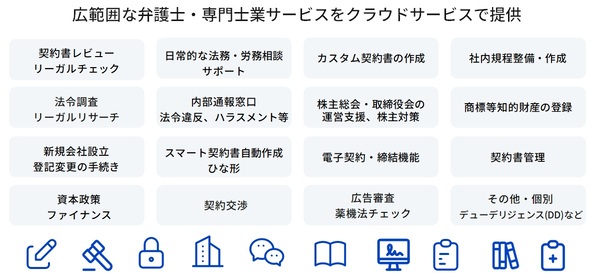 クラウドリーガルは、生成AIと弁護士スケール体制を融合した、法務BPaaS型の日本初の企業法務アウトソーシングサービスALSP(代替法務サービスプロバイダー)です。インターネットWebサービス(BPaaS)として弁護士・専門士業(司法書士・弁理士・行政書士・社会保険労務士・税理士)へ法律や知的財産・労務・税務の法務相談や、弁護士監修の契約書の作成・契約書レビュー(リーガルチェック)、法令調査(リーガルリサーチ)、社内規程整備、電子契約・契約管理機能など信頼できる法務サービス機能を、いつでも、どこからでもオンラインで、月額11,000円からご利用いただけます。クラウドリーガルが「社内法務」「企業内弁護士」「部分法務アウトソース」や「顧問弁護士」の役割を果します。