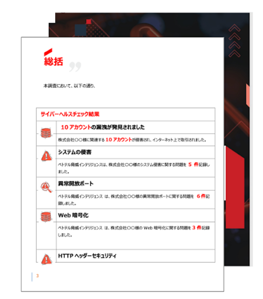 - アカウント侵害、データ漏洩、ブランド侵害、各種脆弱性の有無を調査