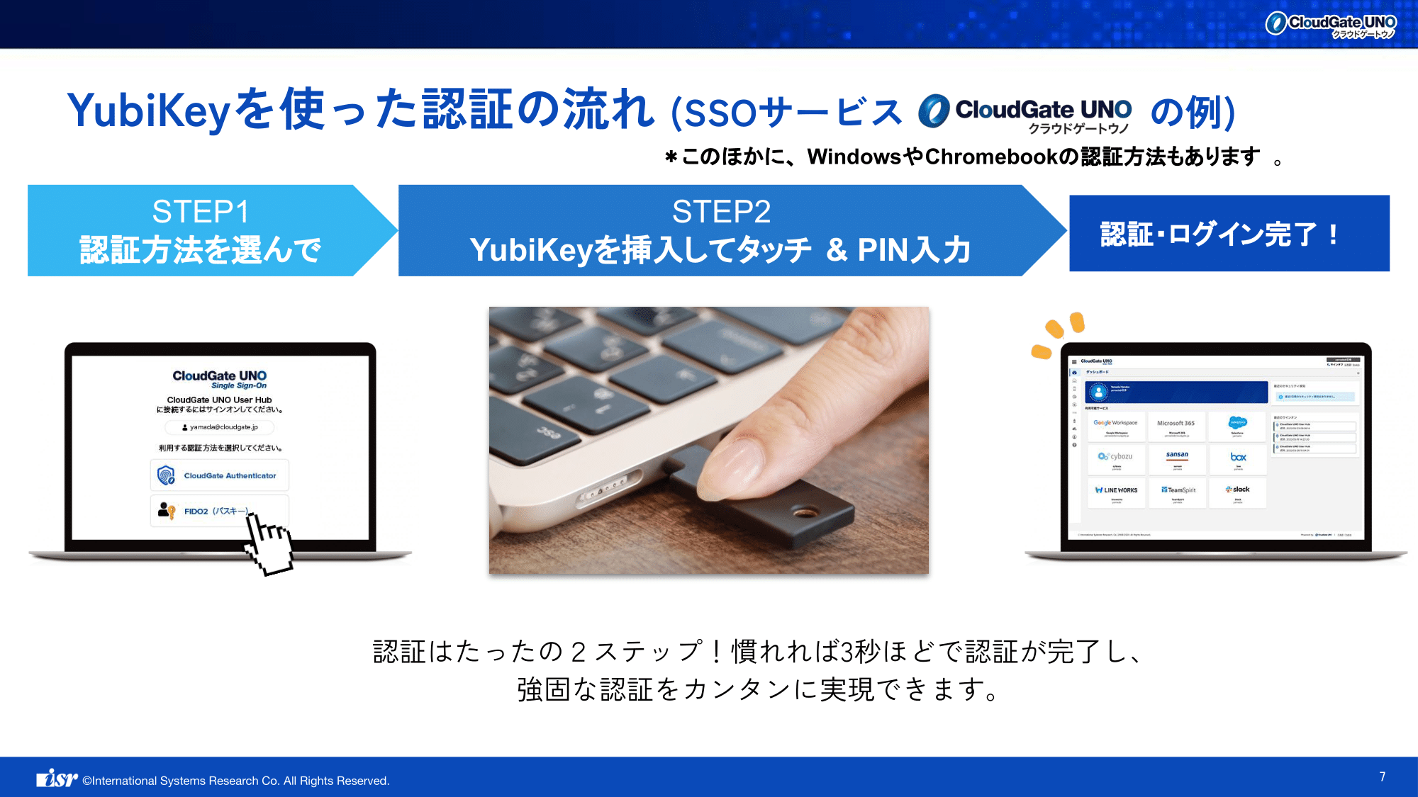 ・CloudGate UNOなどのIDaaSと連携し、強固なパスワードレス認証を容易に実現