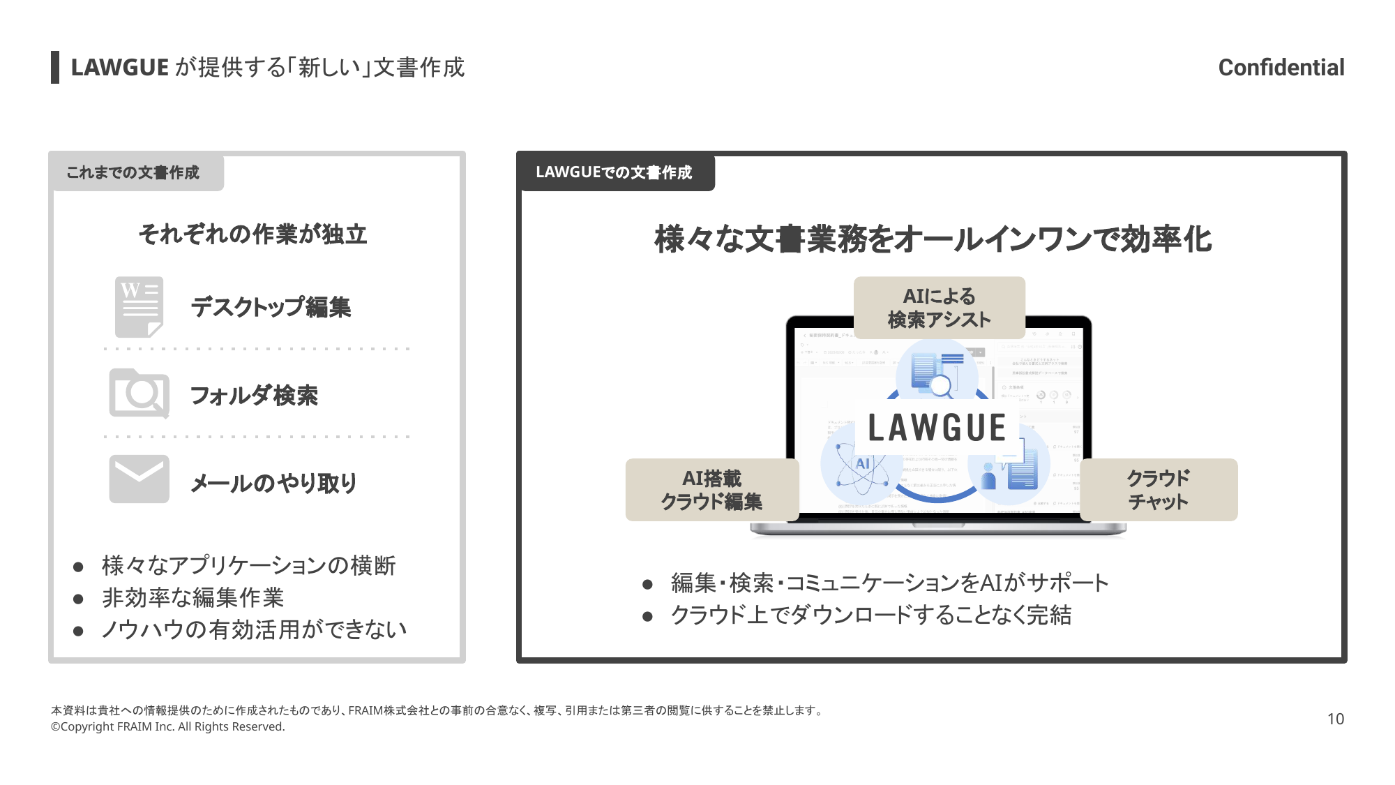 また、「文書探し」「履歴探索」「体裁直し」等の非効率作業を徹底的に削減いたします。