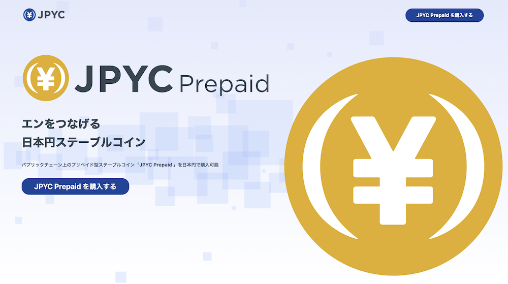 日本円ステーブルコイン『JPYC Prepaid』の購入や利用をすることができます。