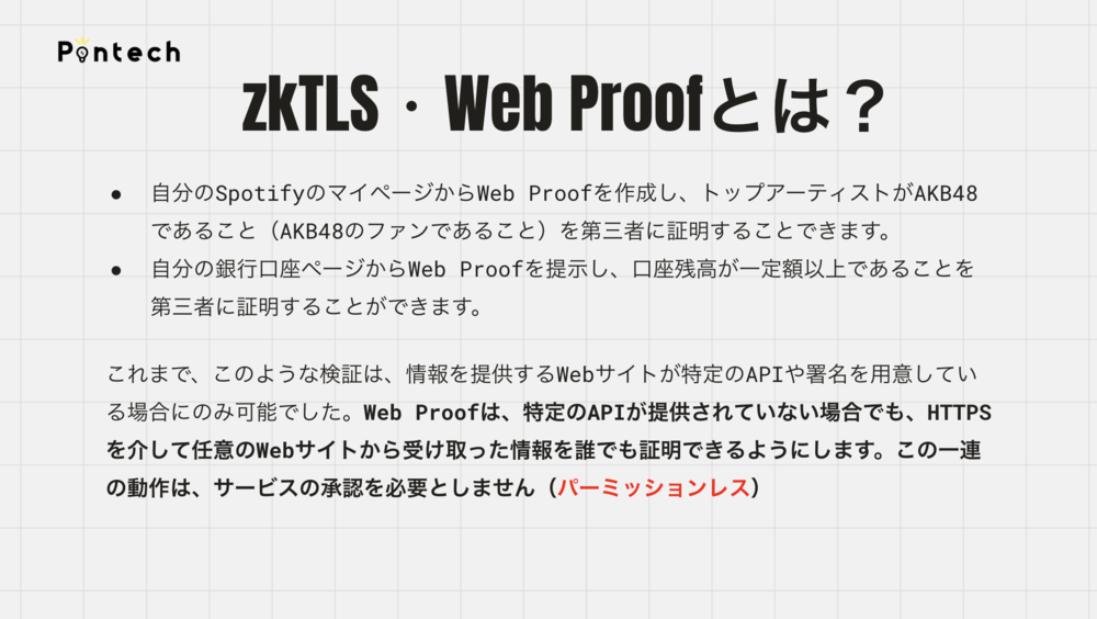 そこで注目しているのが「Web Proof」と「zkTLS」という先端技術です。