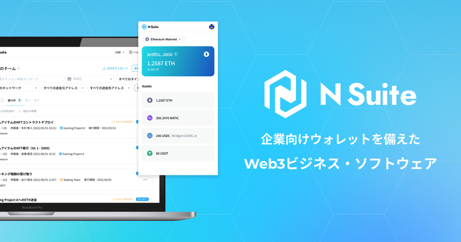 企業向けのウォレット機能を備えたWeb3ビジネス・ソフトウェア(SaaS)。企業がWeb3領域で事業を行うにあたって秘密鍵を保有する場合に、セキュリティや内部統制を考慮した秘密鍵管理ができる機能を提供。その他、Web3領域の事業で必要な暗号資産の保有やNFT発行、スマートコントラクト開発などを安全かつ効率的に行える機能を提供し、NFT/Web3領域への事業参入をサポート。スタートアップから大手上場企業まで60社以上の導入実績がある。