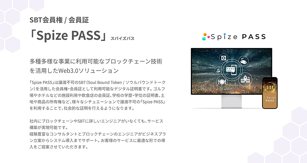 譲渡不可のSBTを活用した会員権・会員証「Spize PASS(スパイズパス)」