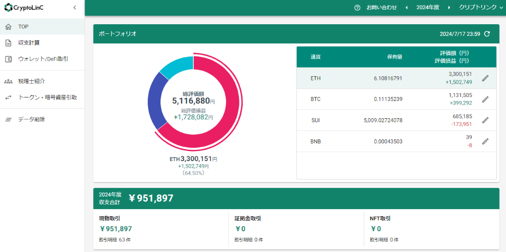 - ウォレット/DeFi機能 / NFTの収支計算